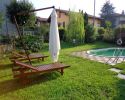 L'ampio giardino che circonda la casa ospita una zona pranzo con gazebo e una piscina interrata.